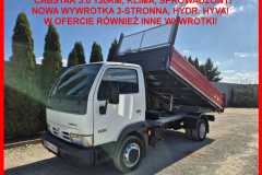 Ofertą sprzedaży jest Nissan Cabstar z silnikiem 3.0 na kołach zębatych. Wersja z wywrotką 3-stronna o długości 3.5m
